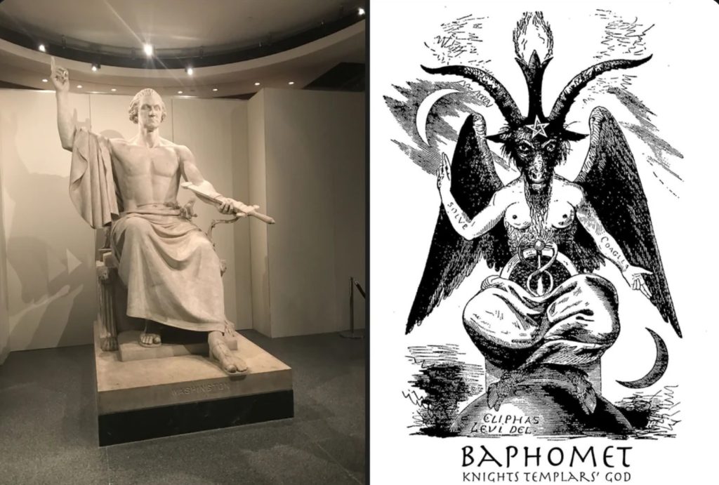 George Washington as Baphomet…In 1832, on the centennial of George Washington’s birthday, Congress wanted to honor the occasion with a permanent shrine to the founding father…