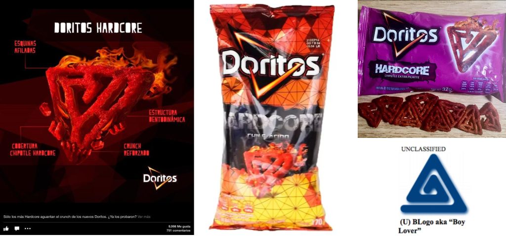 Wow….. thats pretty blatant. And on a snack that kids and adults eat. I see this kinda thing and then wonder what the point of it is. Are they subversively saying they advocate this deviance or are they in some way involved in it themselves? Any trafficking going on? Disney is very much guilty of putting that symbol out there too which somehow makes more sense. But why a company like Doritos? My only theory at this point is that anything LGBT or deviant is being pushed by not little brands but the heavy hitters. Bud Light, M&Ms, Oreos, I believe Jack Daniel’s did something with their ads featuring a transformer as well.
