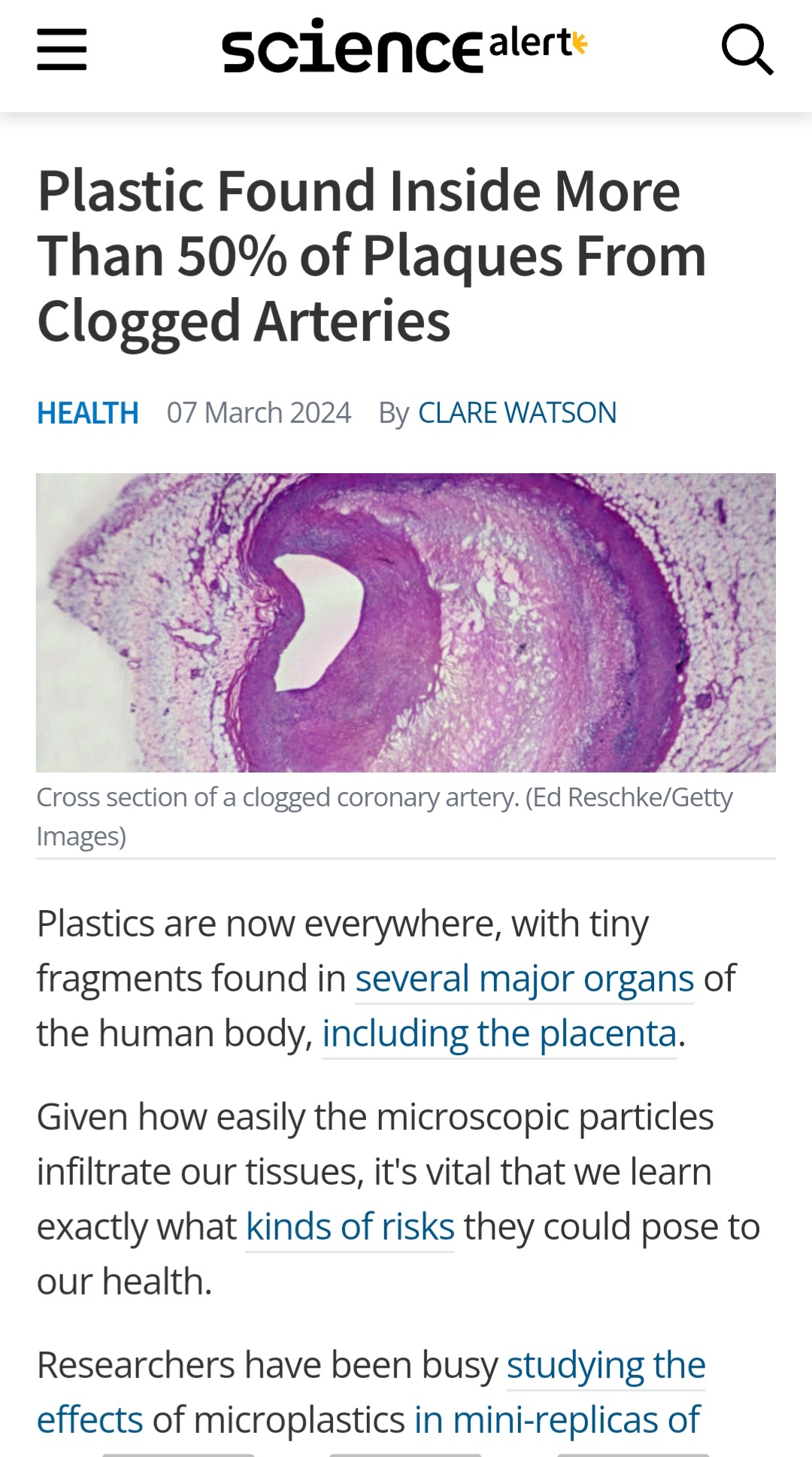 “Following 257 patients for 34 months, the researchers found nearly 60 percent of them had measurable amounts of polyethylene in plaques pulled from their fat-thickened arteries, and 12 percent also had polyvinyl chloride (PVC) in extracted fat deposits.”