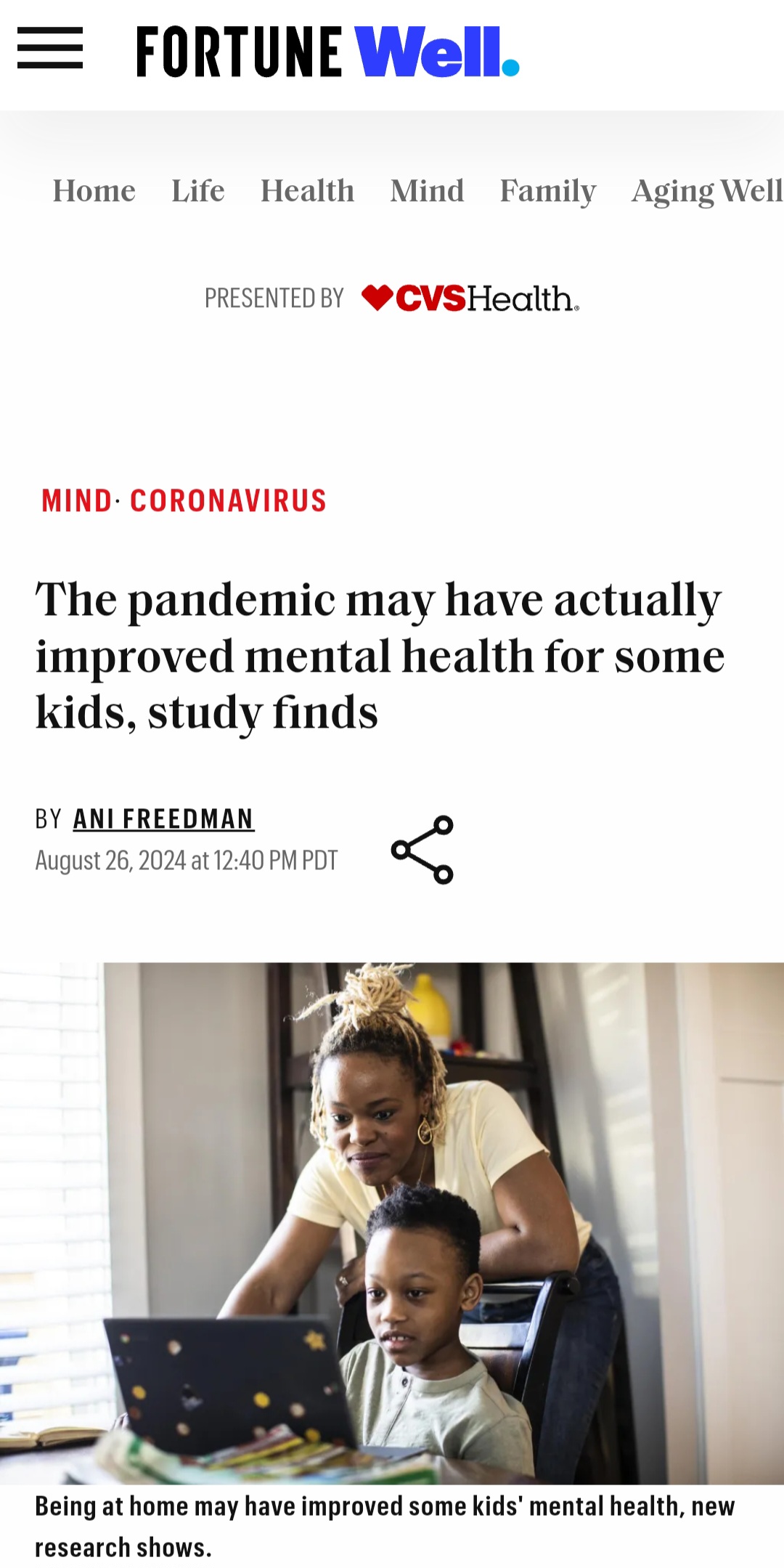 Fortune’s “Well” column has put out some bullshit article defending kids mental health during the covid lockdowns.