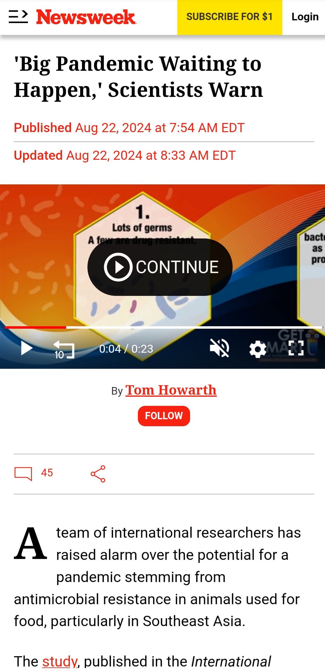 Newsweek is busy sounding the alarm over a “big” pandemic that seems inevitable. This time, in the form of antimicrobial resistance in animals in the food supply chain and a possible shortage of antibiotics.