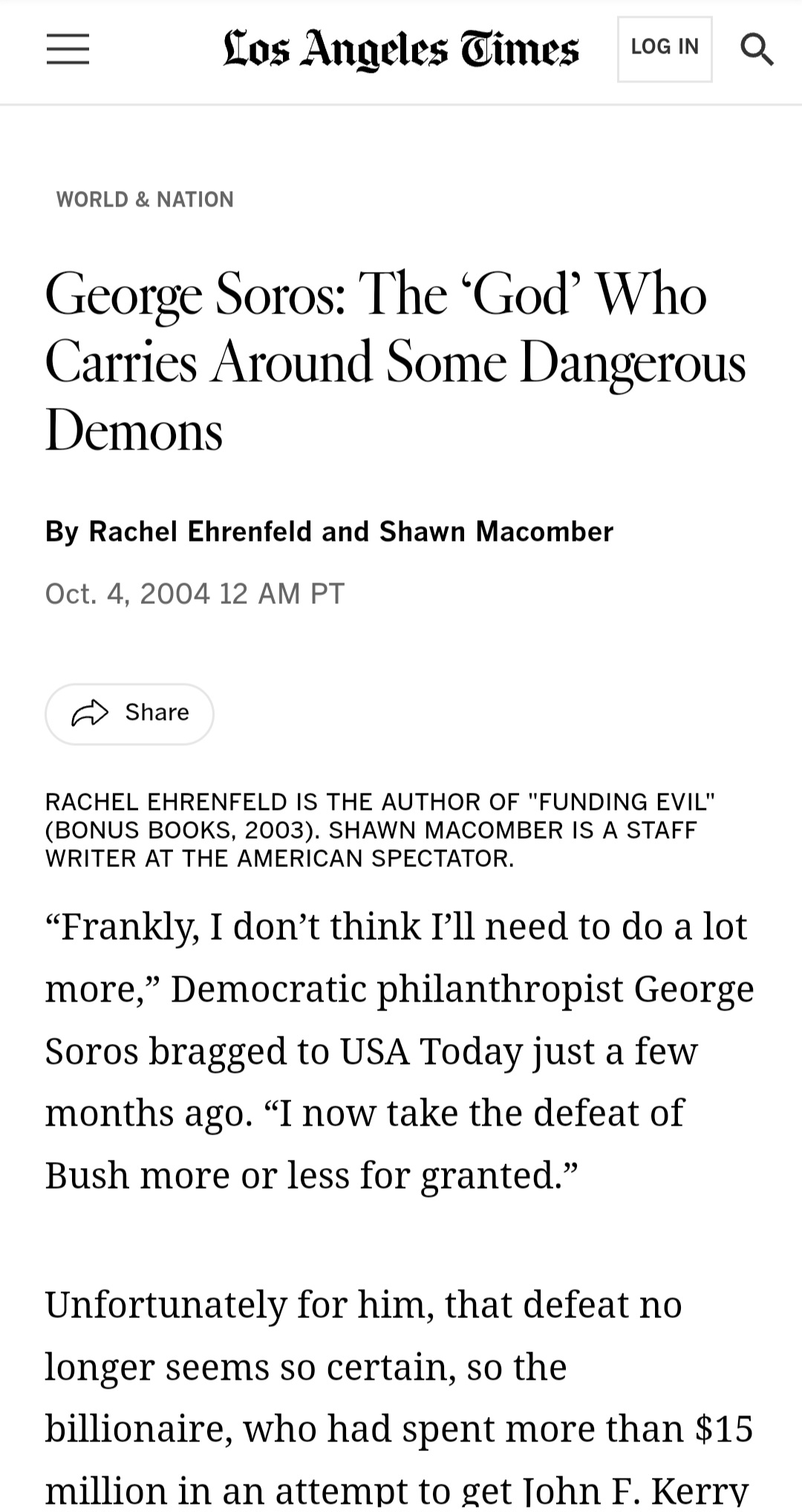 FLASHBACK: The Los Angeles Times exposes George Soros as a megalomaniac with a "god" complex (circa 2004).