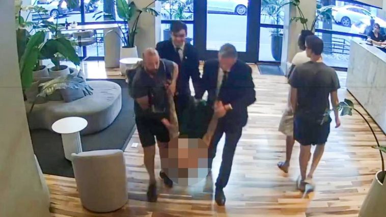 The picture that will shock music fans around the world: the late British pop star Liam Payne being manhandled through a hotel lobby just minutes before his fatal fall from a third-floor balcony.