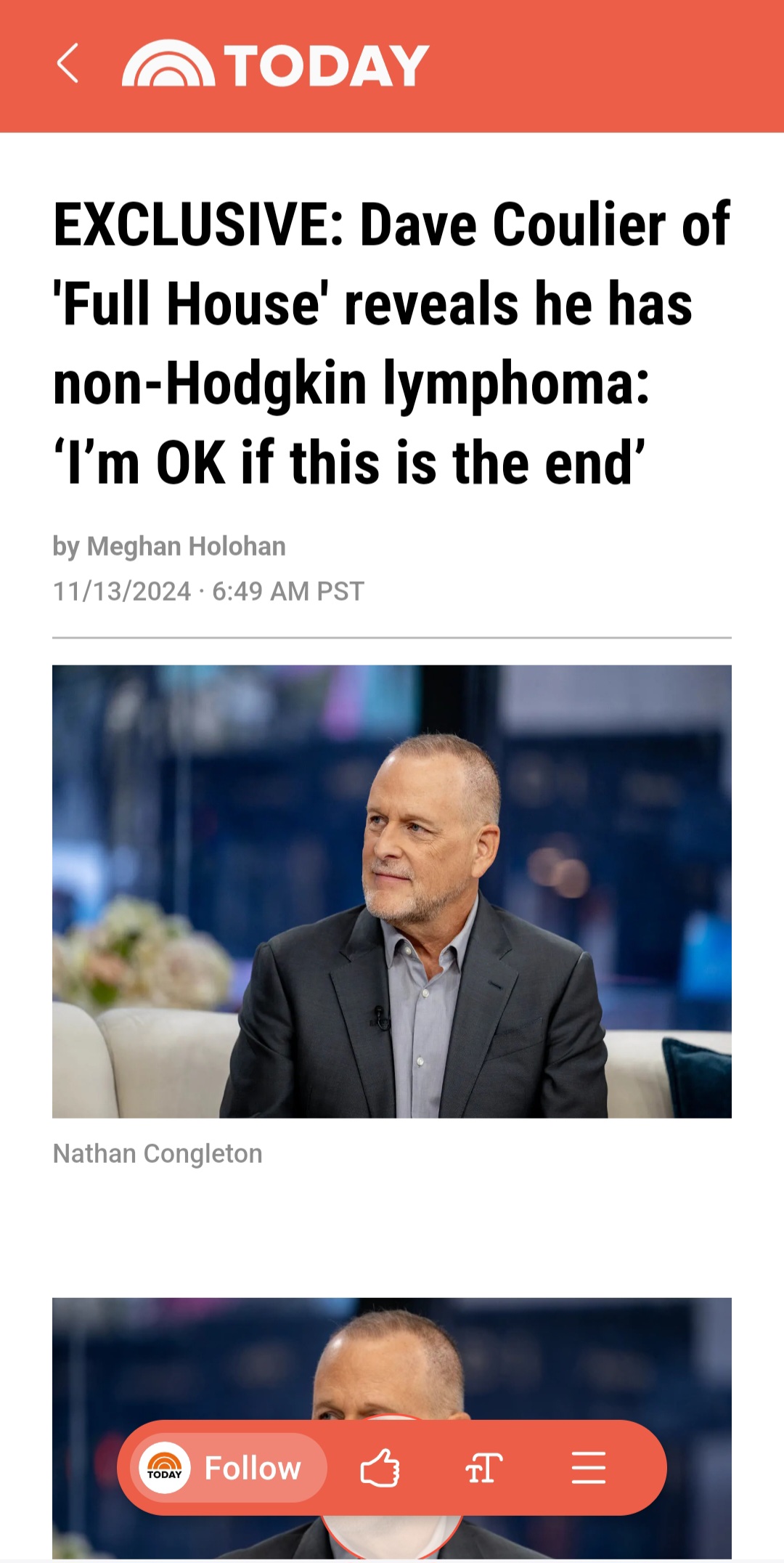 Uncle Joey from the sitcom “Full House”, Dave Coulier, details his battle with stage 3 non-hodgkins lymphoma.