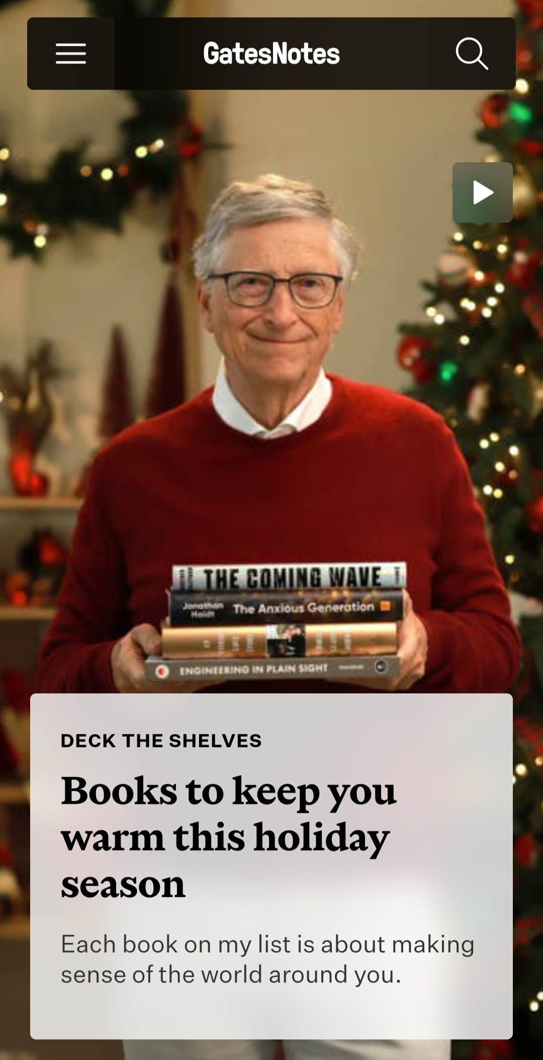 Taken from his lame blog “GatesNotes”, he shares four of his favorite books yo atock your Christmas stockings with.