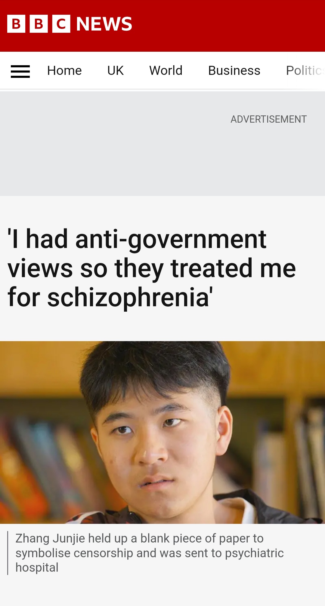 When Zhang Junjie was 17 he decided to protest outside his university about rules made by China’s government. Within days he had been admitted to a psychiatric hospital and treated for schizophrenia.