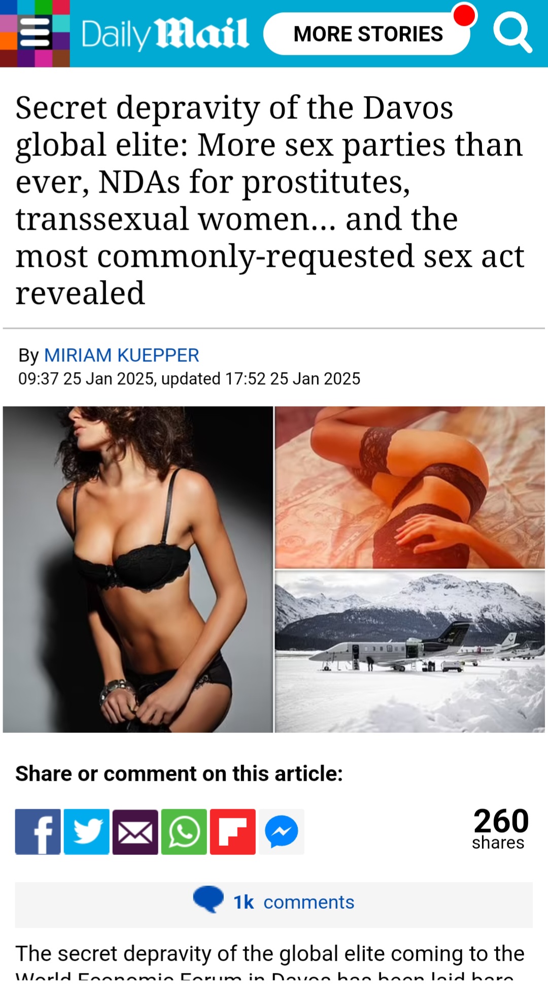 The secret depravity of the global elite coming to the World Economic Forum in Davos has been laid bare, with escort agencies revealing that the demand for sex parties, NDAs for prostitutes and transsexual women has increased.