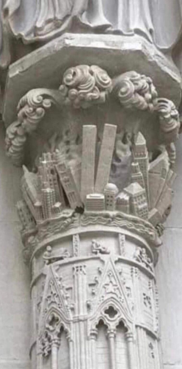 Someone damaged the twin towers sculpture in Jan 2018 (only that particular piece) amid the attention it received since the towers fell. Was this to change the dates or add something? Is New York viewed as the whore of Babylon? I would think Rome could be as it’s ancient but then history is written by the Rockefellers.