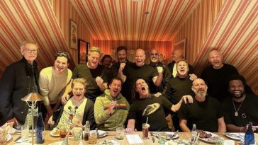 • Dubbed "The Laugh Supper" Jim Carrey's birthday party pic..Jim wearing a Saturn shirt..